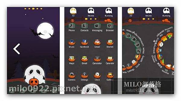 《 Halloween P 》 熊貓萬聖節 [GO] Android手機佈景主題 每年的10月31日 當晚小孩會穿上化妝服 戴上面具 挨家挨戶收集糖果 諸聖節仍然被稱為「Allhallowmas」 意思是在紀念所有聖人(All Hallows)的那一天要舉行的彌撒(Mass)....................
